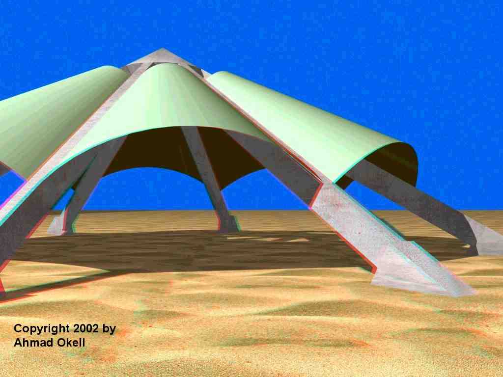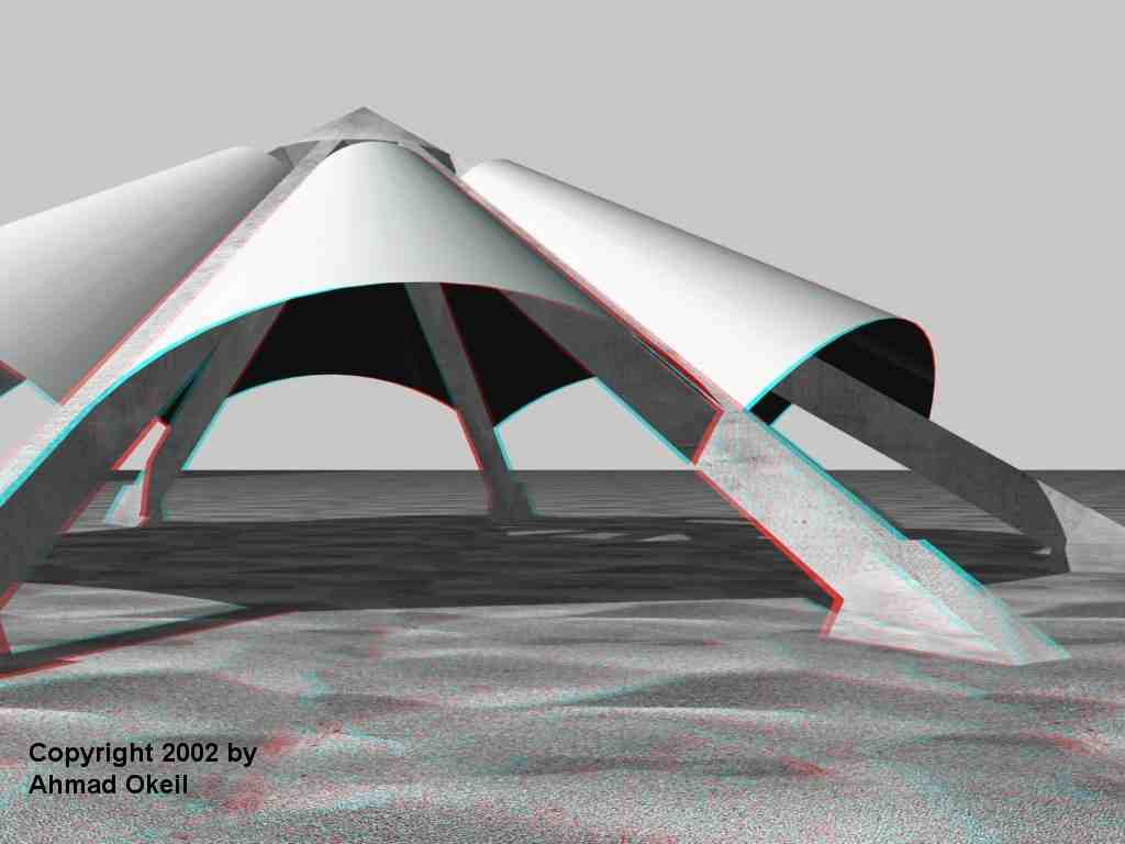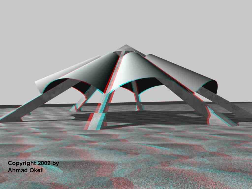 The following images were rendered using 3D Studio MAX. To view the images and experience the stereoscopic effect it is necessary to view them using red-blue anaglyph glasses with the red filter on the right eye. If you have no anaglyph glasses click here to download a file that shows you how to make one yourself in a few minutes. If you have anaglyph glasses with the red filter on the left eye then you can either bend the anaglyph so that you have its inside out. Or you can flip the images horizontally using any image processing program. If every thing works fine, you will see the front parts of the model popping out of the screen and the rear parts of the model sinking back. For those of you with shutter glasses try the shutter glasses page for a better quality stereoscopic experience.