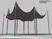 An anaglyph is a moving or still picture consisting of two slightly different perspectives of the same subject in contrasting colors that are superimposed on each other, producing a three-dimensional effect when viewed through two correspondingly colored filters. They offer a simple and inexpensive method for viewing stereo images. The quality of stereoscopic experience is not as good as the quality of stereo images seen through shutter glasses. Your eyes and brain need some time to start experiencing the stereoscopic effect. The more you train your eyes the faster they adapt to seeing the red-blue images. If you have no anaglyph glasses click here to download a file that shows you how to make one yourself in a few minutes.