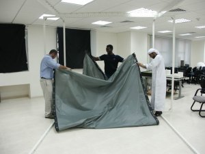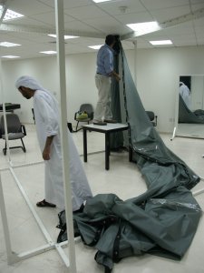 The Model was unfurnished so we had to take real chairs with us. From left to right: Ahmad Alikhan, Mohammad Al Zarouni, Ahmad Okeil, and Rashed Al Kaabi.
