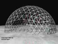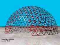Colored anaglyph images maintain RGB information of objects in the scene. Colored anaglyph images offer an interesting alternative to gray scale anaglyph images as long as the original images do not contain neither red nor blue objects or backgrounds. The wind tower below is a good example of a colored anaglyph. Red or blue areas such as the red geodesic dome or the blue sky back ground shown below reach only one eye which causes a lot of confusion and spoils the stereoscopic effect.