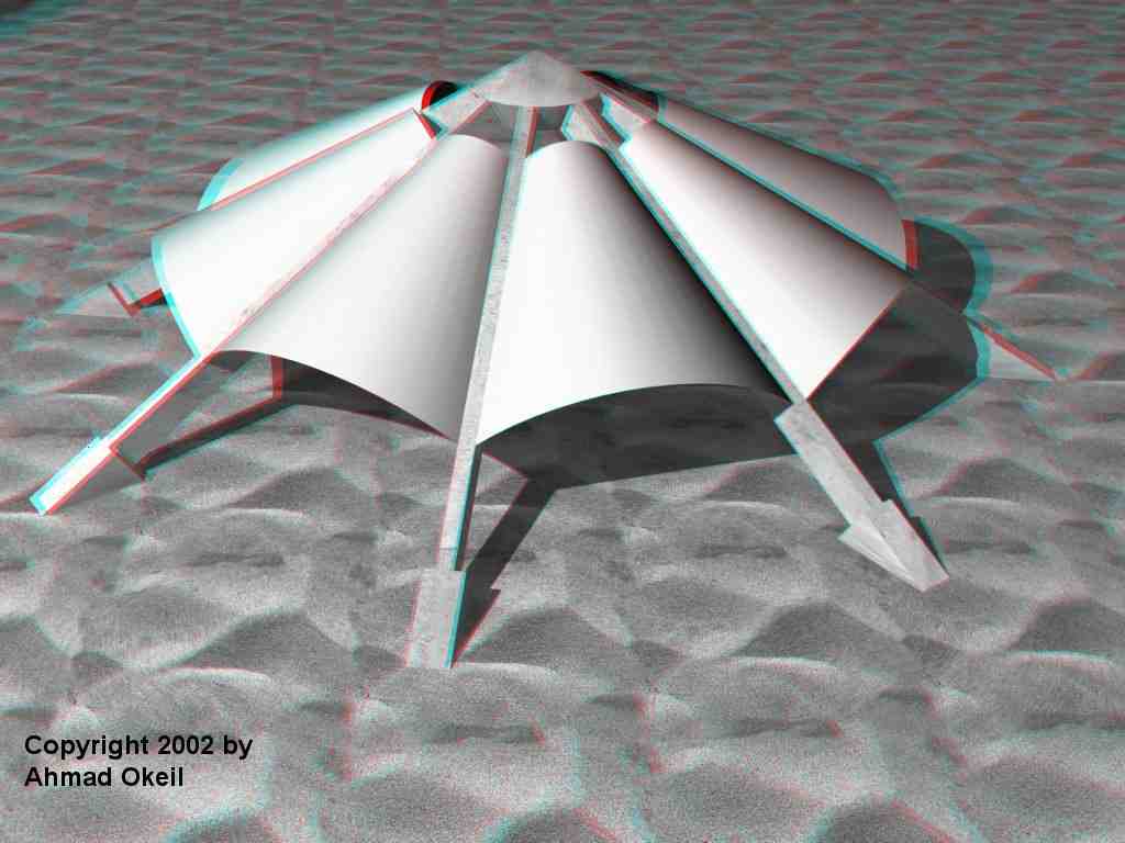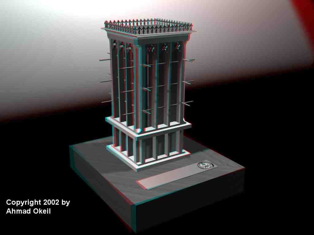 The following images were rendered using 3D Studio MAX. To view the images and experience the stereoscopic effect it is necessary to view them using red-blue anaglyph glasses with the red filter on the right eye. If you have no anaglyph glasses click here to download a file that shows you how to make one yourself in a few minutes. If you have anaglyph glasses with the red filter on the left eye then you can either bend the anaglyph so that you have its inside out. Or you can flip the images horizontally using any image processing program. If every thing works fine, you will see the front parts of the model popping out of the screen and the rear parts of the model sinking back. For those of you with shutter glasses try the shutter glasses page for a better quality stereoscopic experience.