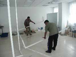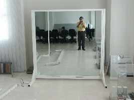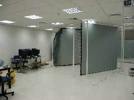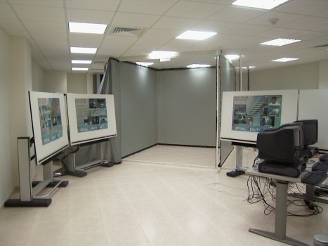 Why Design and Construct a CAVE? Turnkey CAVES are commercially available. The price for a standard 4 sided commercial CAVE (3 walls + floor) with stereo display is in the range of 300000 US$. Additional options may raise the price to 360000 US$. This price makes purchasing a turnkey CAVE beyond the budget of many educational institutions. Therefore, we decided to design and construct our own CAVE and to tailor it to fit our own needs at a very small fraction of the price of a commercial CAVE. |