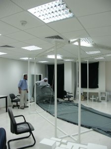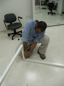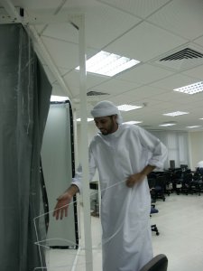 The Model was unfurnished so we had to take real chairs with us. From left to right: Ahmad Alikhan, Mohammad Al Zarouni, Ahmad Okeil, and Rashed Al Kaabi.