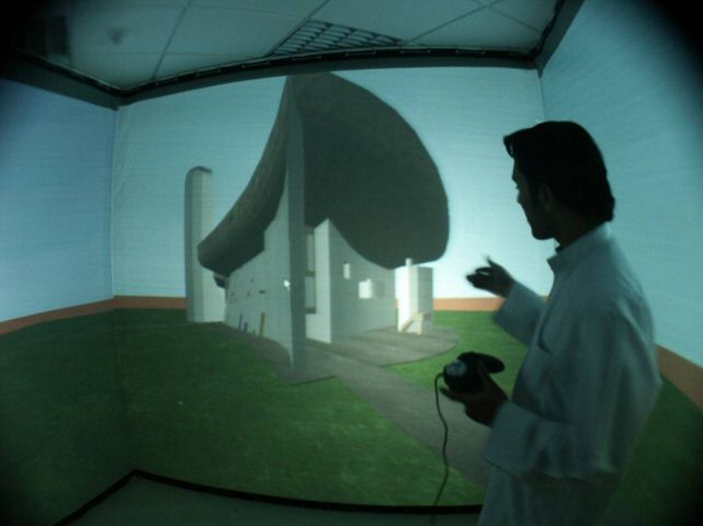 CAVE Applications in Architectural Education Good skills at envisioning three-dimensional spaces and forms from two-dimensional renderings are important requirements for students of architecture. The early introduction to the computer interface and an underdeveloped manual drawing ability leave many students with difficulties in expressing their ideas graphically using traditional presentation methods (pen, pencil, and brush). In the design studio, new tools are sought after to overcome this situation. Virtual reality tools are being increasingly used in design studios in many schools of architecture. The fundamental idea behind the three-dimensional immersive environment is to present the student with a perspective image, which changes as he navigates through his proposed design. In the CAVE the student feels the experience; not just sees it. The CAVE allows an instructor to walk through a design with his student and critique the design, discuss modifications, and leave behind markers with annotations to record specific suggestions for later design modification. A three dimensional model large enough to walk through could boost the student’s ability to conceive three-dimensional spaces and could make it easier for the student to understand something of what the instructor sees in his imagination. The CAVE also allows experimenting with new instructional concepts that are not currently possible with either traditional or CAD-based computer graphics techniques.
